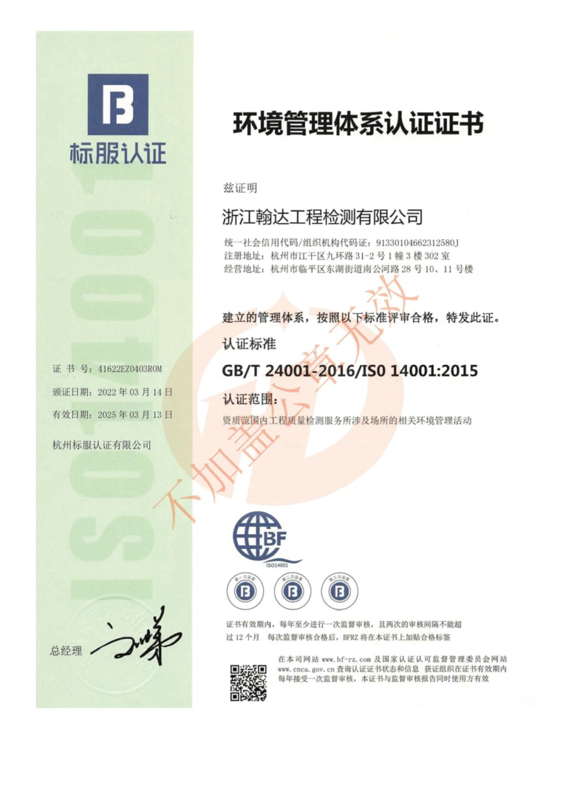 環(huán)境管理體系認證證書